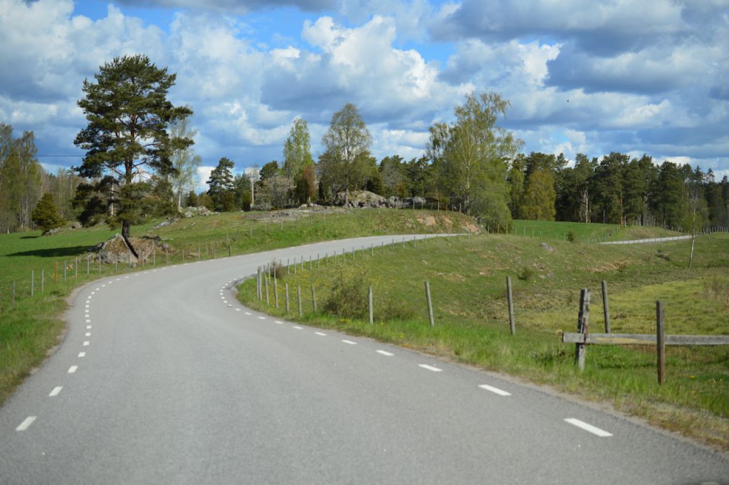 Am Donnerstagmorgen sind wir von unserem schönen Stellplatz am Moor nur ein kleines Stück weiter in Richtung Norden gestartet. Aber sobald man die viel befahrenen Landstraßen verlässt, muss man in Schweden schnell auch mal ein paar Kilometer über unbefestigte Straßen fahren. Die Schotterpisten werden aber scheinbar sehr gut in Stand gehalten. Schlaglöcher kommen so gut wie nicht vor. Schneller als 40km/h fährt man aber auf solchen Straßen wohl nur mit einem großen PickUp oder einem alten Volvo 😉